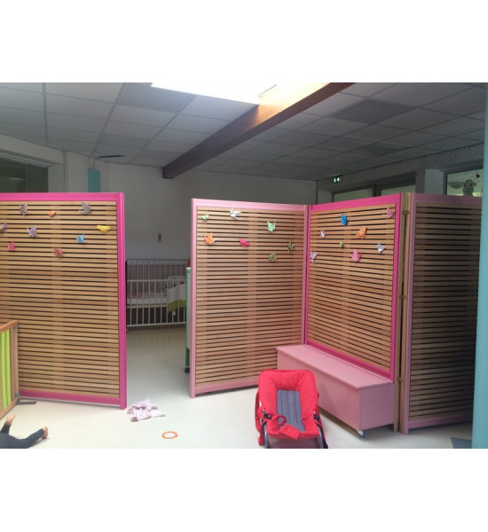 Le châssis de la cloison avec bac offre les possibilités de: séparer des espaces, insonoriser, être mobile avec la capacité de rangement en plus ! La cloison est la même que notre modèle BI-LINE avec un bac de rangement en plus Ossature en hêtre massif de 60mm avec lames horizontales de 28 mm Le bois est issu exclusivement des forêts Françaises labellisé PEFC (Norme de protection environnementale, sociétale et économique) Les assemblages sont réalisés avec des vis mécaniques pour démontage éventuel Les parois sont équipées de renfort intérieur Le cadre est fini avec l'application d'un vernis naturel anti-feu Recto panneaux en bois brut avec cadre en couleur et verso en mdf plein avec cadre et panneau en couleur L'ISOLATION PHONIQUE La cloison inclus un fond en laine acoustique M1 et feutre noir M1 Les tests d'absorption ont été réalisés en laboratoire, la performance se porte sur les fréquences intermédiaires type: voix, bruits de circulation, déplacement de personnes, manipulation de service etc... Tant mieux ! C'est la preuve d'un réel confort anti-bruit ambiant courant. On obtient ainsi une réduction des nuisances sonores avec rupture de diffusion de bruit (ondes sonores), on conseillera des hauteurs légèrement supérieures aux personnes et pas forcément en disposition en ligne car les différentes cloisons acoustiques disposées de ci de là "casseront" les ondes ceci est valable dans un réfectoire par exemple. Ces fabrications, conçues spécialement à partir de nos ateliers, sont réalisées en conformité avec les normes officielles et sont certifiées par les tests laboratoire. L'absorption des résonances sonores se situe à des niveaux élevés pouvant atteindre 100% en efficacité suivant les références des modèles choisis |