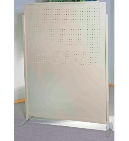 Les cloisons à poser ou mobiles permettent des séparations d'espace, cette cloison est semi-occultante, elle a une partie basse pleine jusqu'à environ la moitié du panneau tandis que l'autre moitié supérieure est ajourée par des pointillés.