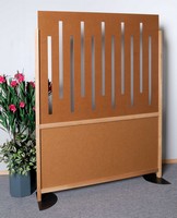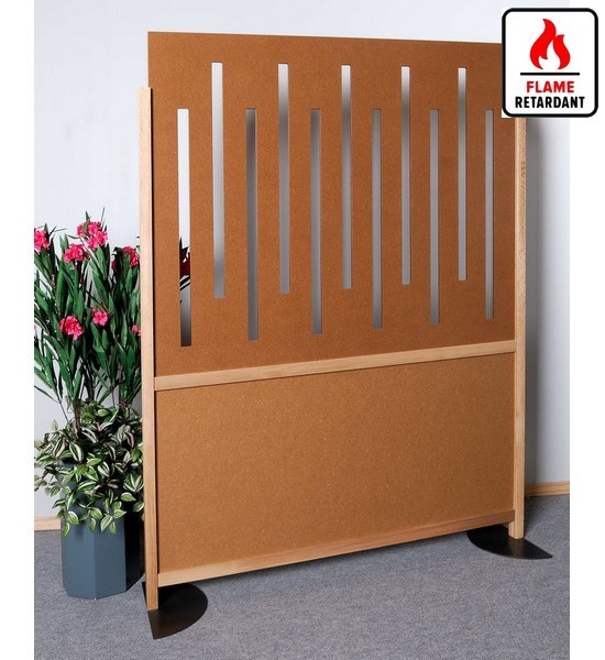 Les cloisons à poser ou mobiles avec roues de déplacement permettent des séparations d'espace, cette cloison est semi-occultante, elle a une partie basse pleine au 1/3 du panneau tandis que les 2/3 supérieurs sont ajourés par des lignes verticales.
