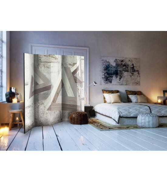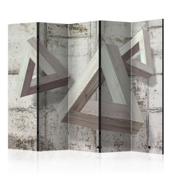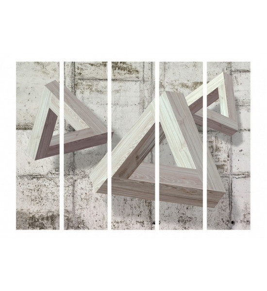 Le triangle de Penrose, l'objet impossible appelé aussi la tribarre, créé par un artiste célèbre des années 30. Des couleurs dans des tons taupe et couleurs bois, apporteront un coté doux et chaleureux.