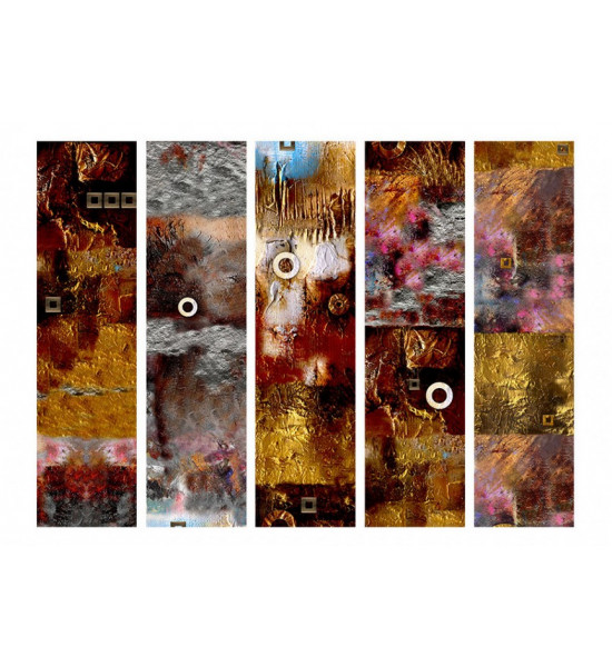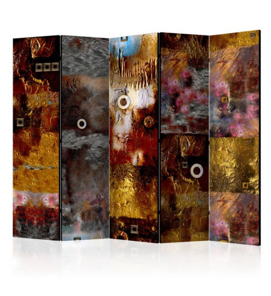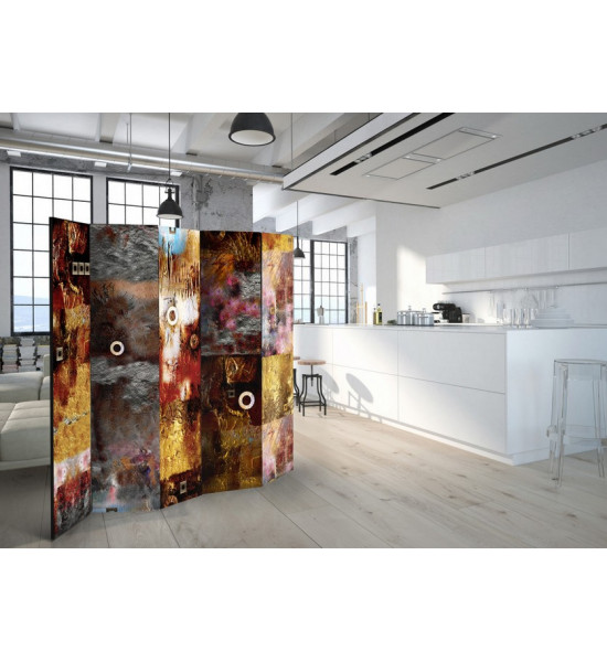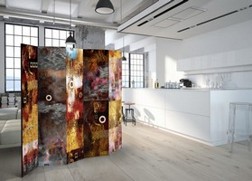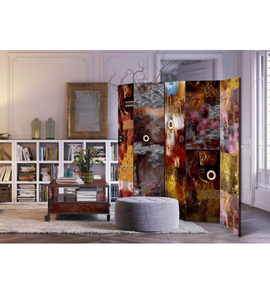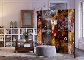 Un paravent design haut en couleurs, il se distingue par les différents effets de matières et de textures donnés comme : ocre, nacre, métallisé... des couleurs parfaitement dans la tendance actuelle comme : or, gris anthracite, bordeaux, bleu ciel, rose... C'est un paravent qui se mariera très bien avec une déco contemporaine !