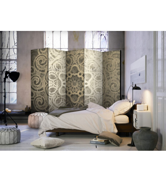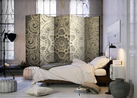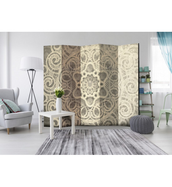 Paravent en toile imprimé qui appelle au calme et à la méditation, avec des motifs arrondis et envoutants, un effet de texture et de profondeur, il saura vous faire voyager à travers vos pensées et développer votre attention et votre concentration.