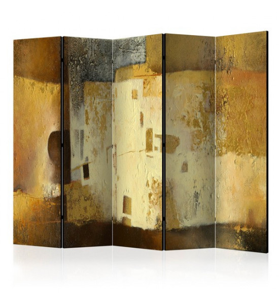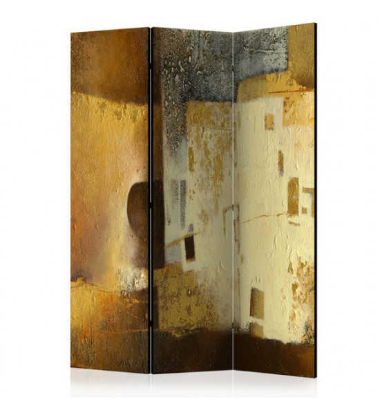 Ce paravent décoratif évoque des façades terreuses d'une ville assoupie sous la chaleur, il est très suggestifs et réchauffera votre intérieur par ces teintes chaudes