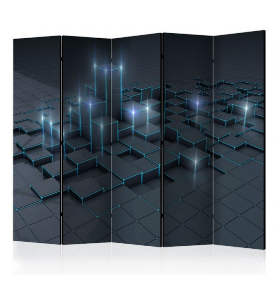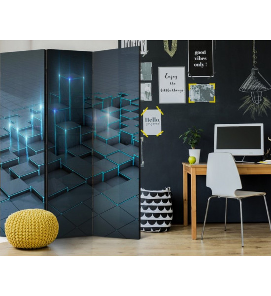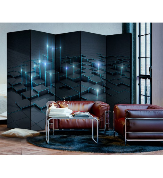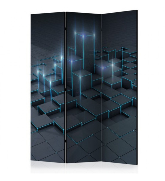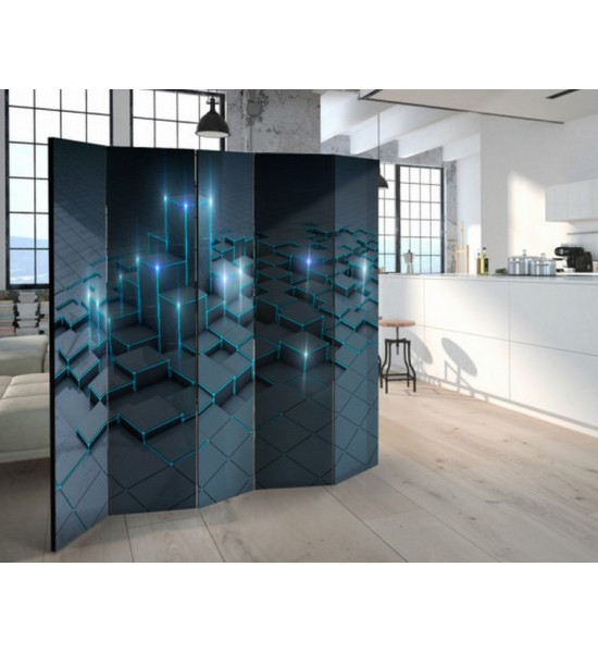 Paravent "black city" pour un décor design de cubes de différentes hauteur, rappelant les buildings de grandes villes, une interprétation toute subjective qui laisse le champ libre à toute imagination bien sûr... Ce paravent moderne est rectiligne, carré, formel et structuré. Les deux coloris uniques: anthracite/carbone et bleu/vert sont reposants et actuels |