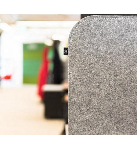 Fabrication à la commande - Délai moyen 4 semaines Cette cloison de séparation a un tissu d'aspect feutré et doux au toucher, épais de 6mm, il est issu de matériaux 100% recyclés