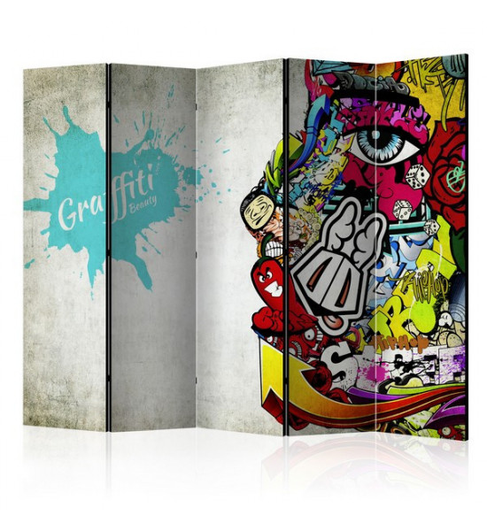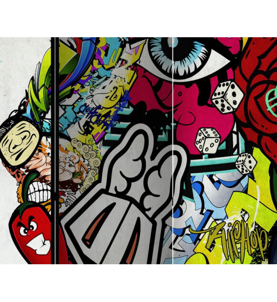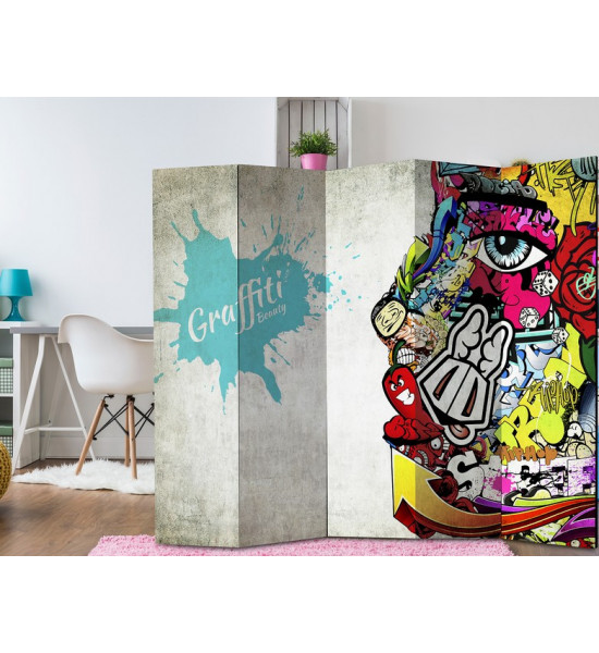 Paravent "Graffiti beauty" Les graffitis sont des peintures sur les murs, mais saviez-vous que son origine remonterait à la Grèce antique ? D'abord perçu comme du vandalisme, puis ayant servi de propagande ou de critique politique; le graffiti est depuis considéré comme de l'art tant certains sont particulièrement saisissants de qualité Idéal pour les ados, ce paravent street art est la représentation urbaine de la jeunesse actuelle Il pourra également se poser dans des établissements scolaires, en déco de vitrine de magasin, club de sport, hall de gare, salle de jeux etc... |