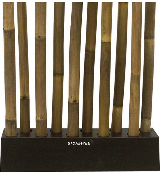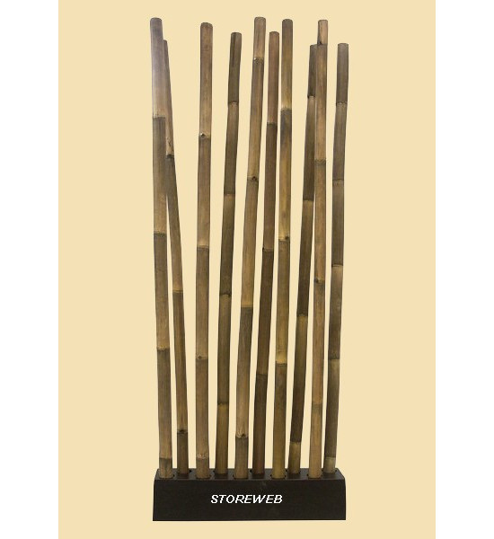 ![]() | Paravent très tendance, 10 tubes de Bambou avec patine noir positionnés dans des encoches sur son socle lesté. Véritables bambous pour une ambiance très zen et déco. Dimensions H 251 x L 97 x épaisseur du socle 30 cm.poids 37 Kg |