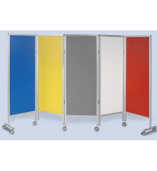 IMPORTANT: - Pensez à noter les coloris dans l'espace texte de la page "mode de livraison" lors de l'enregistrement de votre commande. L'ordre de ces coloris de gauche à droite Ce paravent médical est équipé de roulettes de déplacement, il est proposé avec 7 coloris au choix : Blanc, Bleu, Gris, Noir, Jaune, Rouge ou Vert en finition mate. Chaque coloris est identique sur les 2 faces du paravent. Lors de votre commande la couleur choisie sera celle de tous les panneaux, si vous souhaitez panacher les couleurs veuillez nous le préciser dans l'espace "VOS REMARQUES" lors de votre commande. La structure des profilés est en aluminium, une matière légère, imputrescible, lavable, stable et robuste. Le cadre en alu participe à la bonne stabilité de l'ensemble Les panneaux sont en mousse micro-cellulaire PVC rigide et dense de 3 mm. Ils sont résistants aux chocs, à l'usage répété de désinfectant, lessivables et ignifugés (Anti-feu B1) Les couleurs sont teintés dans la masse et ne décolorent pas Les charnières galvanisées sont à inversion de sens ce qui permet une ouverture/fermeture vers l'avant ou l'arrière indifféremment. La base est dotée de pieds permettant le passage d'air et le nettoyage au sol qui se terminent par des roues de déplacement. Les roues du paravent médical sont à l'unité et sans frein pour les panneaux du milieu et pour chaque extrémité, une barre transversale en aluminium servant de stabilisateur recevra 2 roues dont une avec frein. Diamètre de la roue 60 mm |
