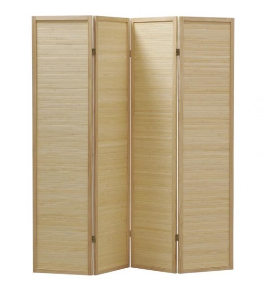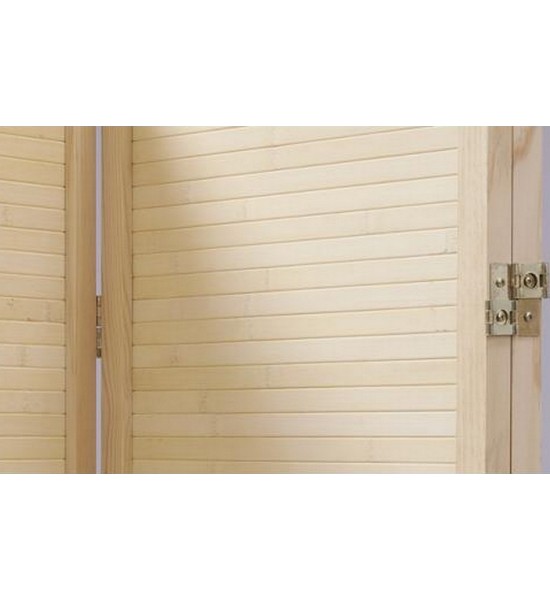 Paravent NATURAL avec un châssis en pin de teinte naturelle avec des panneaux en lattes de bambou disposées horizontalement