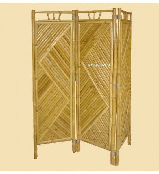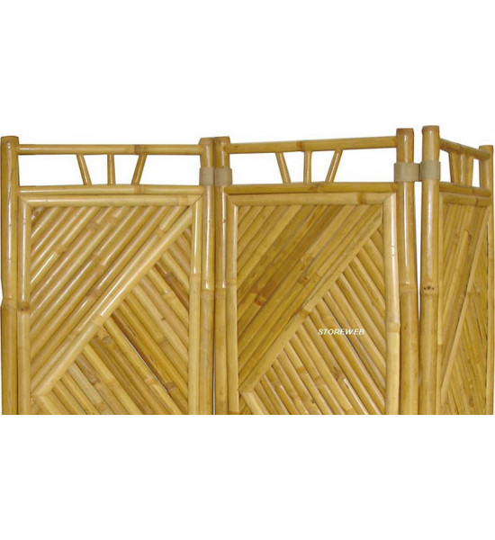 Paravent tout en bambou naturel avec motifs croisés en ton sur ton sur chaque panneau. Teinte naturelle beige. Ambiance coloniale et lounge. Les panneaux sont reliés entre-eux par des sangles Occultant, ce paravent mesure H 160 x L 130 cm. |