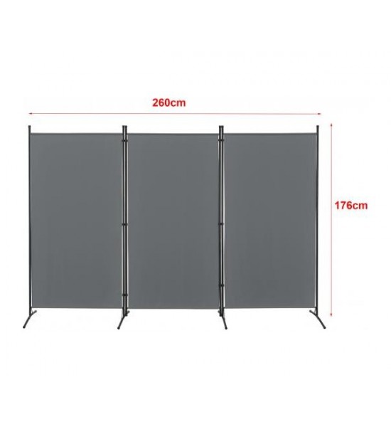 Les charnières du paravent sont en PVC noir il est léger et facilement manipulable Dimensions : paravent 3 panneaux H 176 x L 260 cm |
