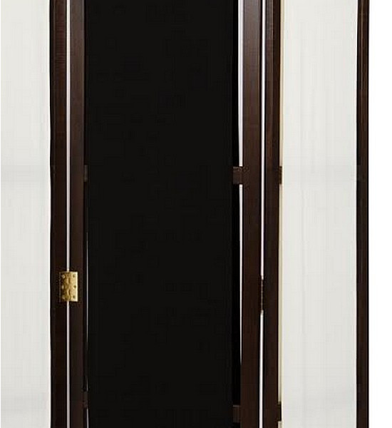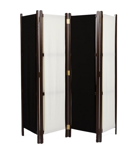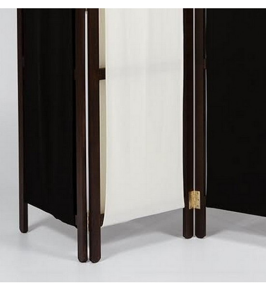 Paravent tissu bi-teintes noir et blanc avec châssis en bois de hêtre teinté marron foncé