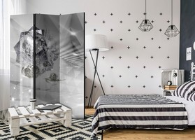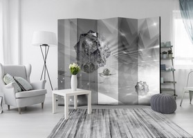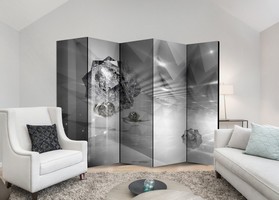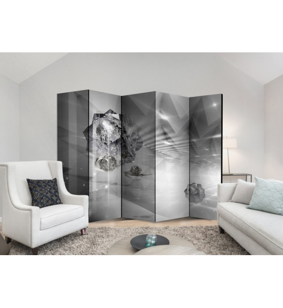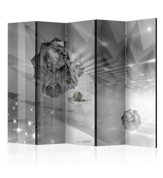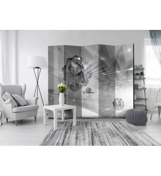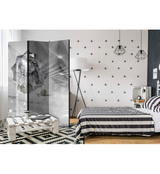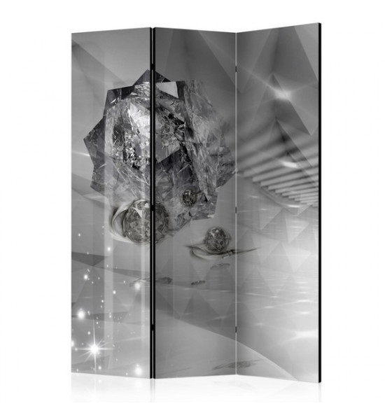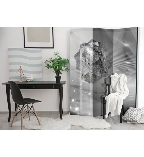 Paravent en toile représentant un diamant taillé, il est sur un fond gris clair très structuré (comme le diamant).